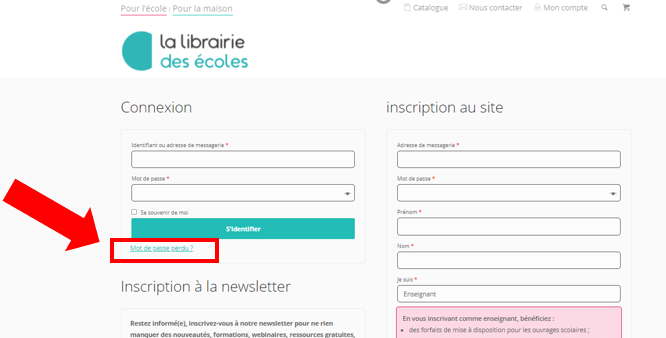 - Rendez-vous sur http://www.lalibrairiedesecoles.com/mon-compte/, cliquez sur Mot de passe perdu ?